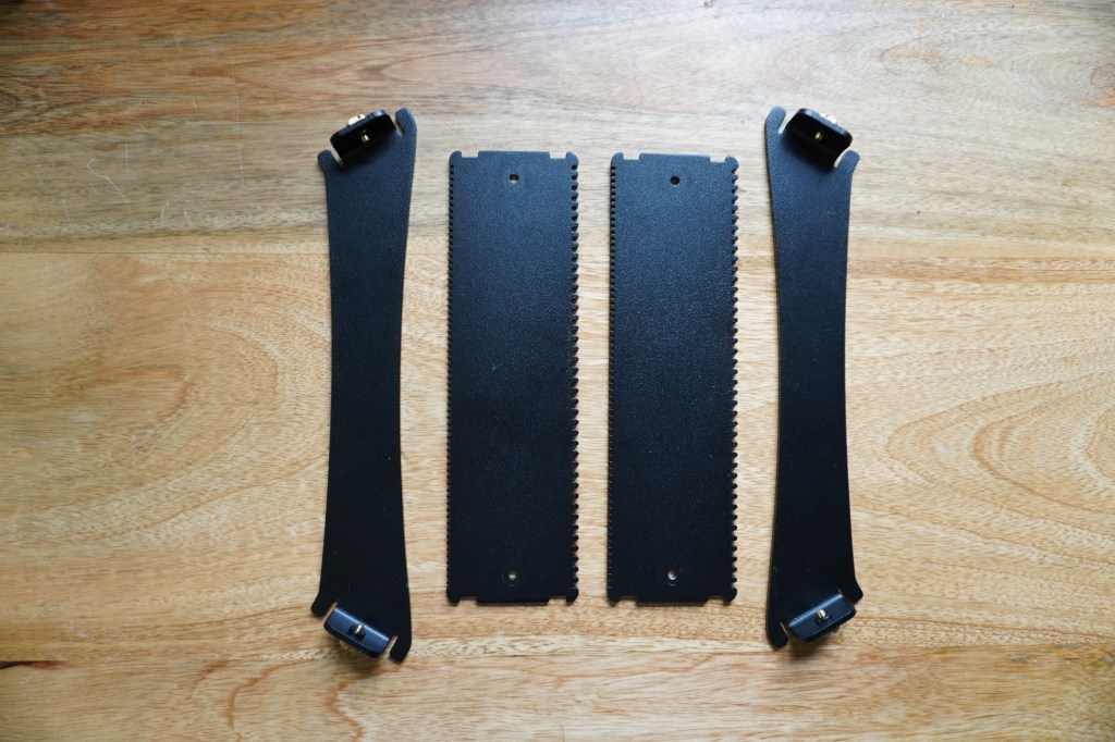 The woodworking and assembly ended up being a bit fussier than we’d like, so I started designing a new version that could be put together with even less manual labor. I made the 3D models in FreeCAD using the sheetmetal workbench. The models were designed in a way that allowed me to create different sizes of looms by changing a single variable in the parameter list. For the material, I chose aluminum with a powder-coated finish to give the looms a combination of decent stiffness, low weight, and corrosion resistance. The plastic connectors were designed out entirely and replaced with bends and press-fit hardware.