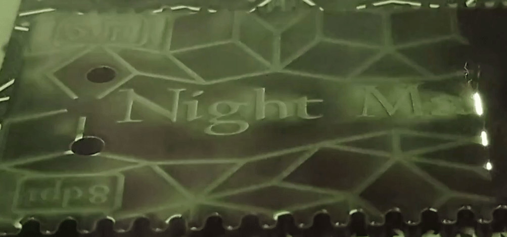 The powder-coated surface lends itself well to engraving with a fiber laser. Shallow passes ablate away only part of the powder-coating, giving the image a subtle look, while cutting all the way down to the aluminum creates areas that contrast the dark powder coating nicely. A dithered gradient allowed me to transition from one to the other while cutting with a single laser power.
